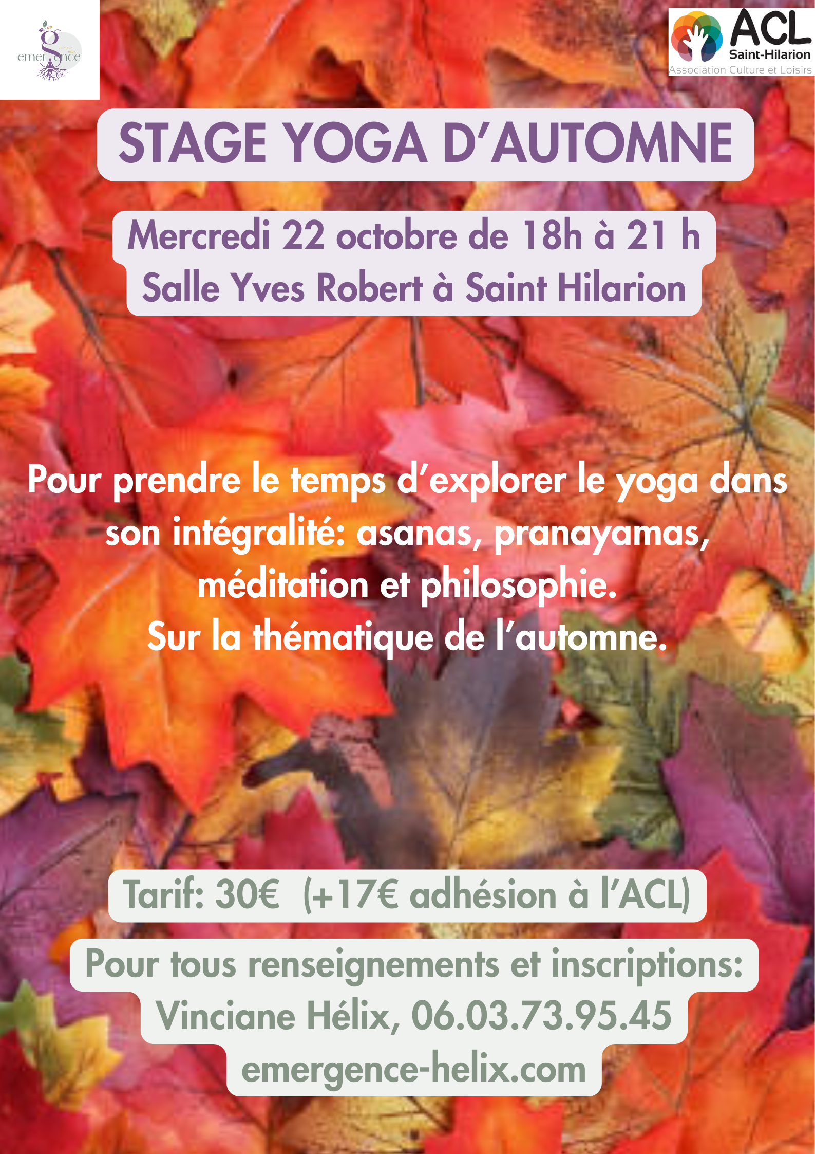 Nous commençons l’année par un stage sur le thème de l’automne, le mercredi 22 octobre de 18h à 21h à Saint Hilarion.